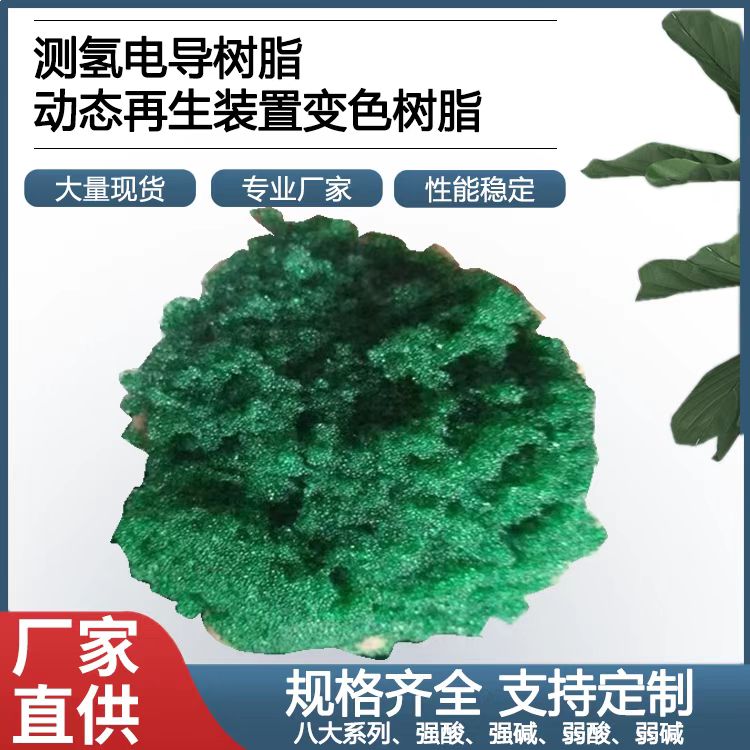 变色阳树脂是一种带有指示剂的阳离子交换树脂,出厂型为氢型,通过变色阳树脂的水如果含有Na+、K+、Ca2+、Mg2+、Fe2+等各种阳离子时,即与树脂携带的H+发生交换,树脂层开始失效,失效层颜色明显改变,指示水中有阳离子泄露。H+型时为墨绿色,Na+型时为玫瑰红色,产品色差十分明显。同时还具有良好的交换容量和物理稳定性。